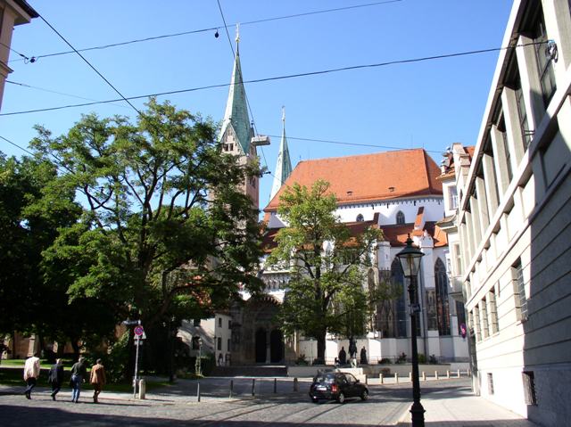 Seit der Gründung durch den römischen Kaiser Augustus 15 v. Ch. ist Augsburg ein Schnittpunkt wichtigster Verkehrsverbindungen des Kontinents. Dieser bevorzugten Lage verdankte die Stadt auch im Mittelalter ihre große Bedeutung. Im 13. Jahrhundert erreichten die Bürger der alten Bischofsstadt die Reichsunmittelbarkeit. Die geldmächtigen Fugger und die seefahrenden Welser erhoben Augsburg zur Weltstadt, zur Stadt der Kaiser und Reichstage, zum Schaffensort berühmter Maler, Bildhauer und Musiker. links mit den zwei Türmen ist das Rathaus von 1620 zu sehen